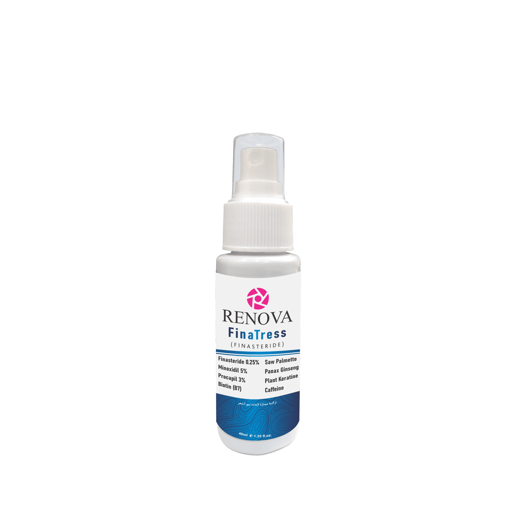 Renova FinaTress Spray hair growth serum is formulated with FDA-approved ingredients, Finasteride, Minoxidil, Procapil, and along with valuable herbs, vitamins, and active natural ingredients to support healthy hair growth. It helps strengthen hair, reduce hair loss, and promote thicker, healthier-looking hair. Regular use for three months is recommended for optimal results.